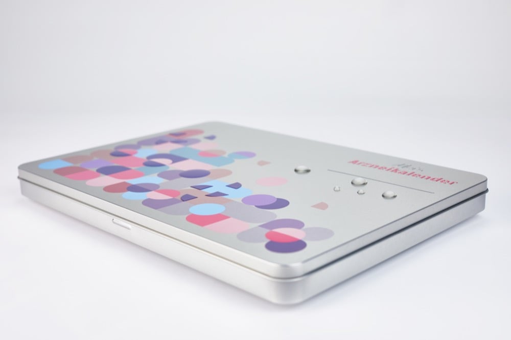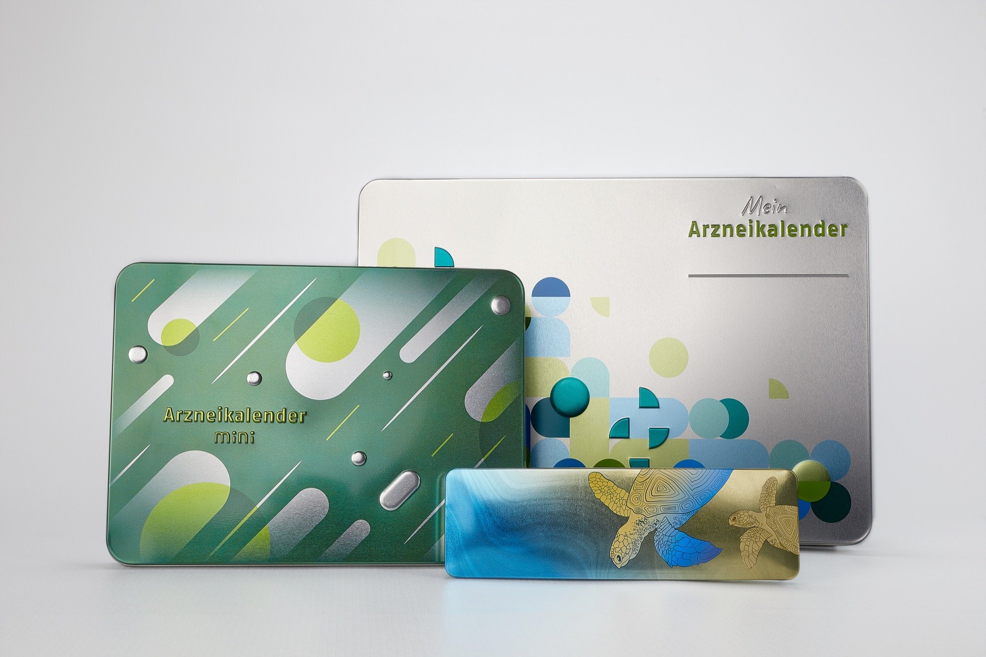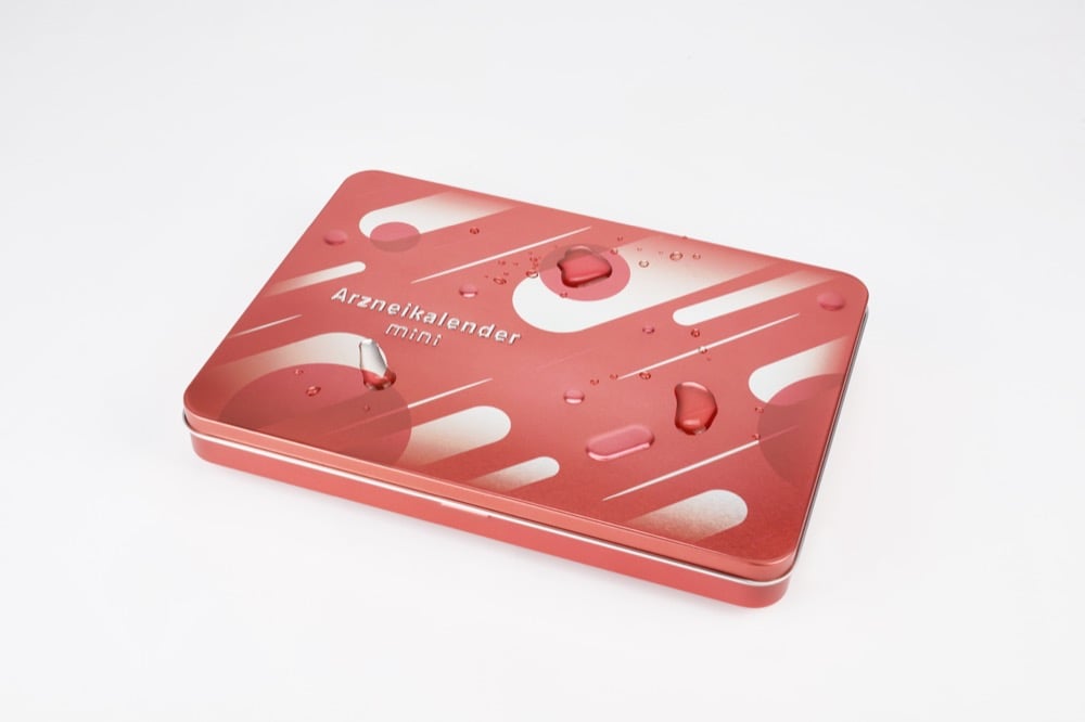 Konzipiert für Patienten zu Hause und für Pflegedienste, bietet der Arzneikalender Komfort bei der Entnahme, zertifizierte Stabilität, Schutz in der Weißblechdose Made in Germany und gewährleistet Übersichtlichkeit auf einen Blick.