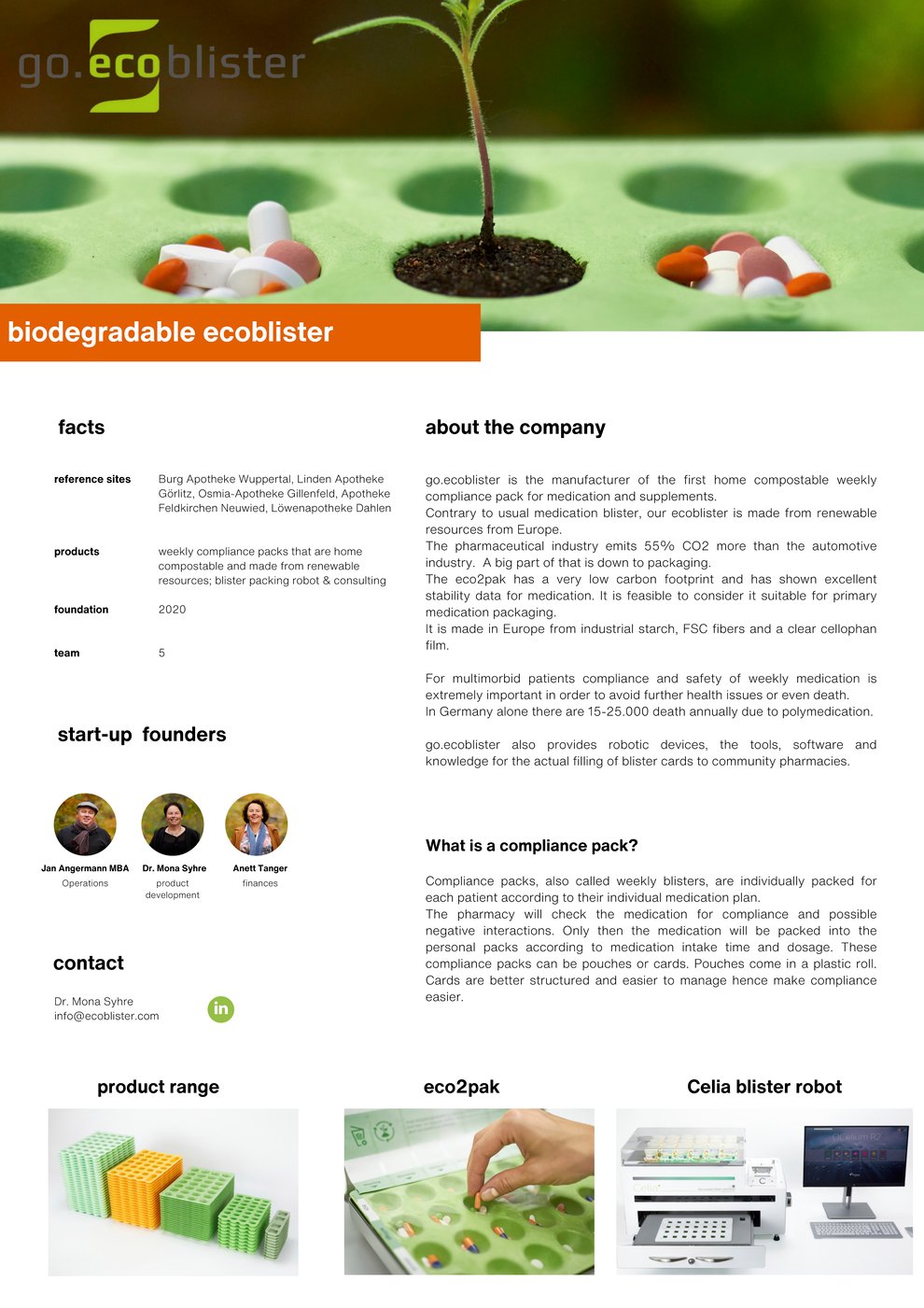 The go.ecoblister GmbH is changing the way medication is packed; it needs to be green.